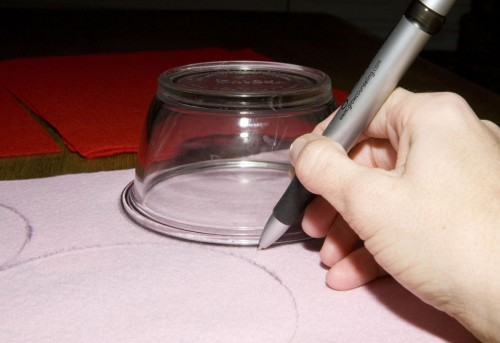 - Draw 4-inch circles on felt and cut out.