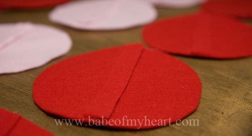 - You will need approximately 5 pieces of 8×11 felt per child (each piece will make 3 4-inch circles) Also–use the SOFT felt. I tried everything from the thicker felt to foam–and the softer felt folds into cookies best.