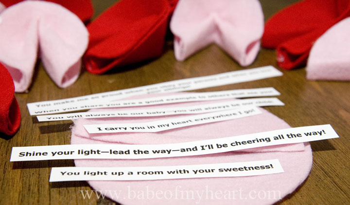 - Print and fold up your “fortunes” or use mine. You can click on this link: valentines cookies which is in PDF format so you can print right off!