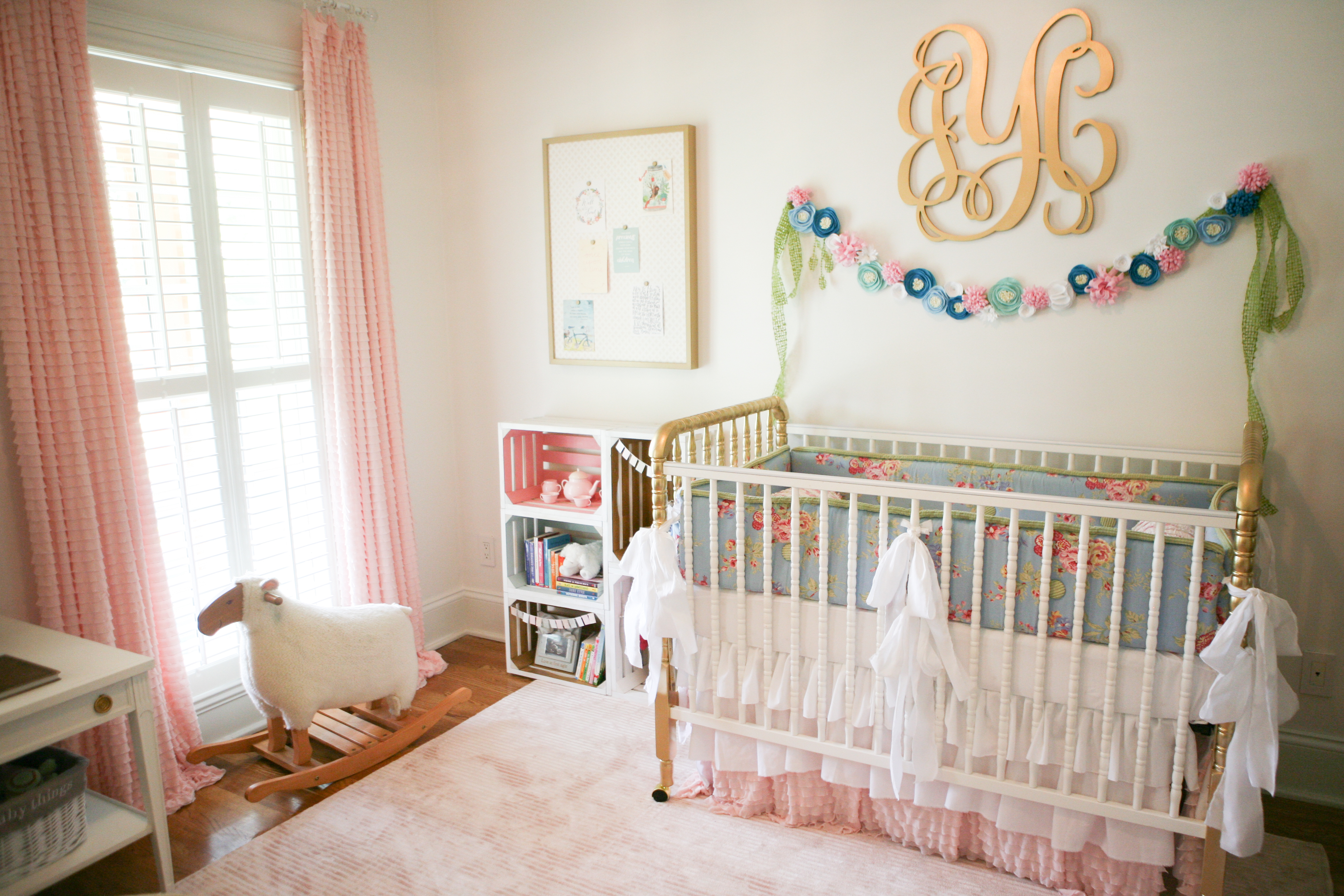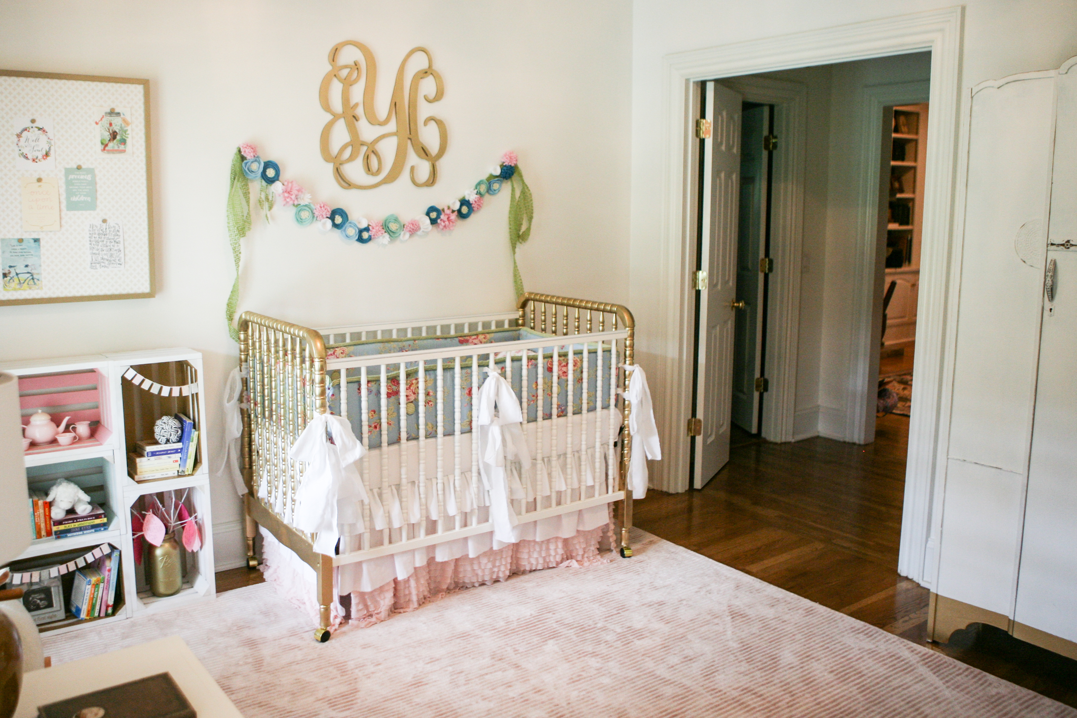 The sweet monogram I bought from MonogramsyLetters on Etsy. I used the same gold spray paint for the monogram.