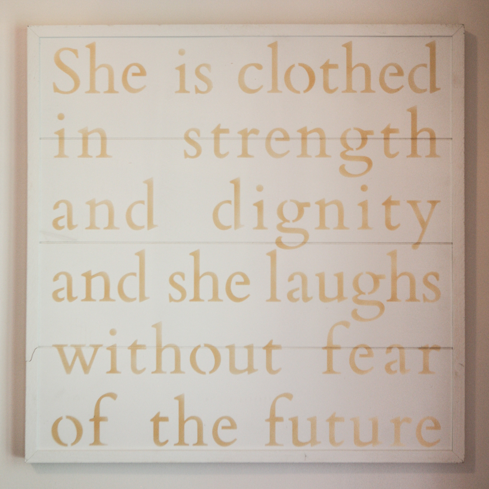 The signs are my favorite…my prayer for her is that she is a Proverbs 31 woman…clothed with strength and dignity and she laughs without fear of the future. I saw one of these on Etsy for $$$$ and while it was tempting–I squealed when I found it for $ on Smallwoods Home.