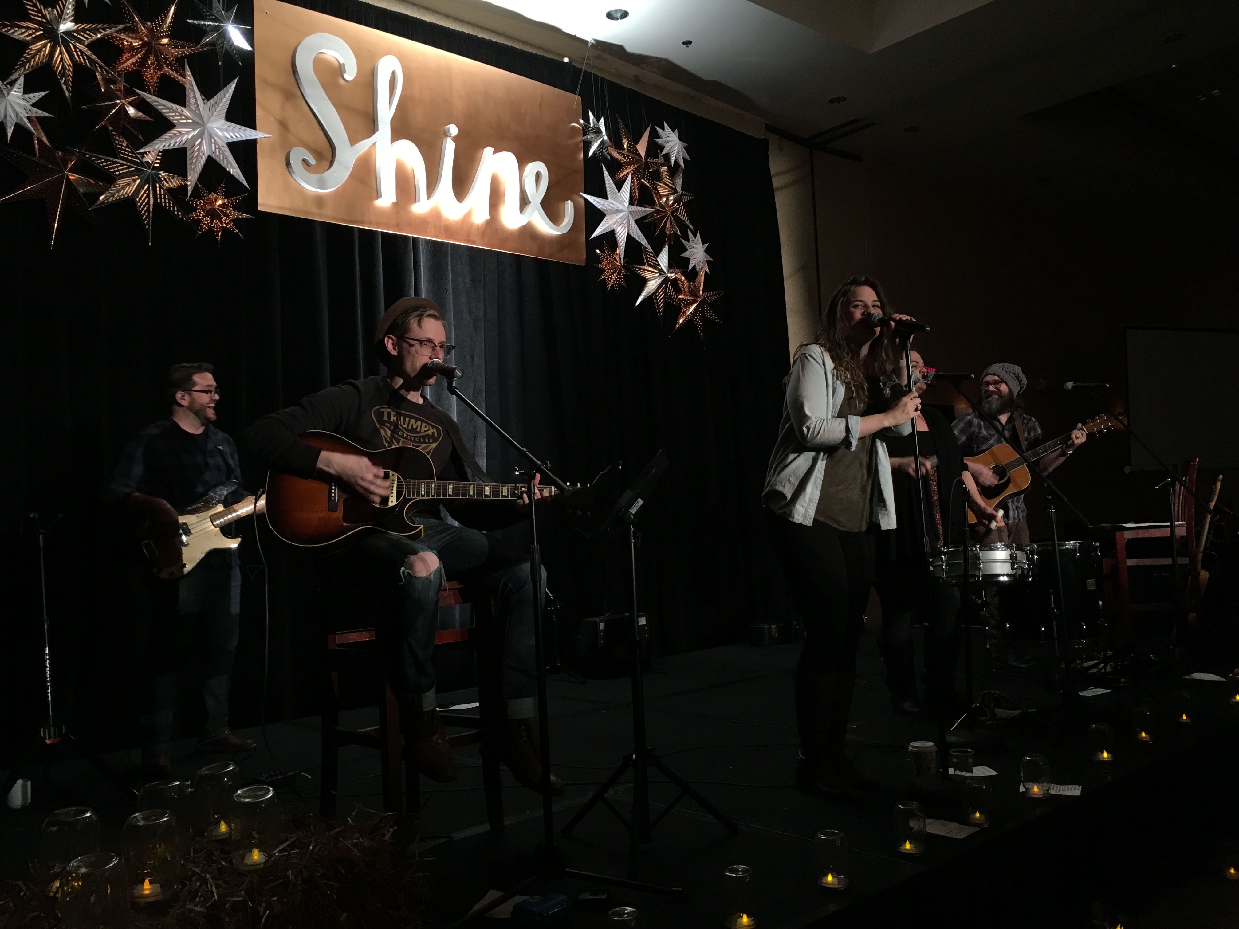We have had the same worship team for several years–and I can’t say enough about this sweet team. If you have been to a retreat then you know how gifted they are in their ministry–how beautifully they pave the way for tired mommas to get to be still and worship. And they are loud;). So that’s helpful when you can’t sing like me;)! You can sing as loud as you want–because I think that’s beautiful to the Lord–but if you are standing beside me and if you could hear me you may not think so! Thank you Amber and Jared Humphries, Candi and Jonathon Shelton and this year Brendan Trinkle for leading us so well to thrones of worship. Oh my. It was sweet! AND…they were BRAVE ENOUGH to take on our ridiculous challenge to ALSO be our country band for Western night! THEY. ROCKED. IT.