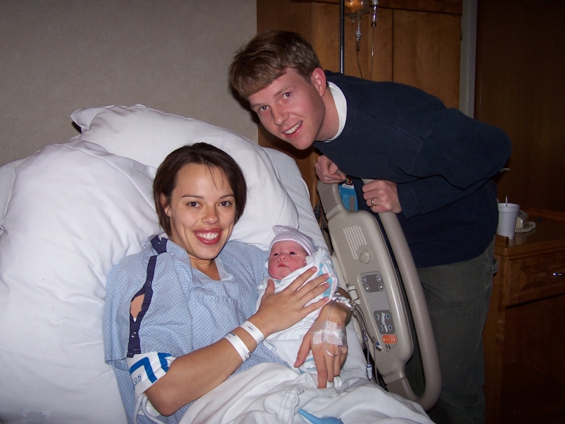 Aunt April called him on HER cell phone and he knew something must be happening–and she told him I was in full-blown labor and they were asking me to push with or without him. So he came running. ONLY…he got on the elevator with a sweet old man that pushed 10 buttons! Serves him right! hahah!!