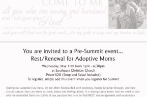 You might want to come just a WEE bit early for an afternoon designed for adoption moms…followed by theView full post »