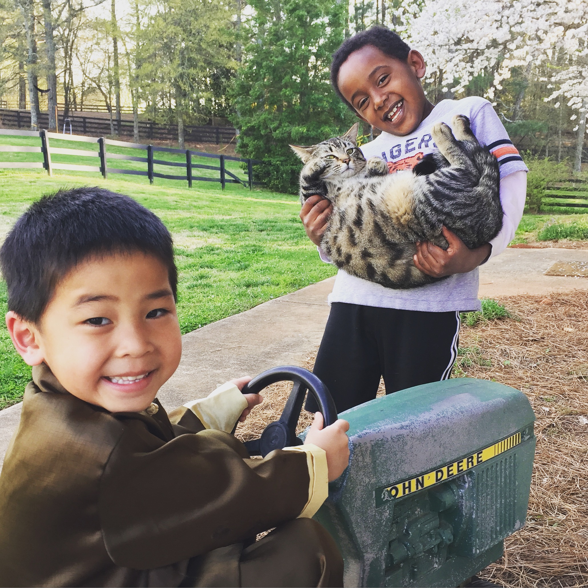 Leading up to today’s soccer game–which wasn’t on my radar as a monumental event;)…I have been doing what momma’s of littles do with daddy out of town–surviving. I’m also in my 3rd trimester of pregnancy so trying to take it easy with daddy in Zambia has been a funny challenge. These younger two have kept me on my toes…and all I have to say about this picture I took yesterday of them together is…poor cat.